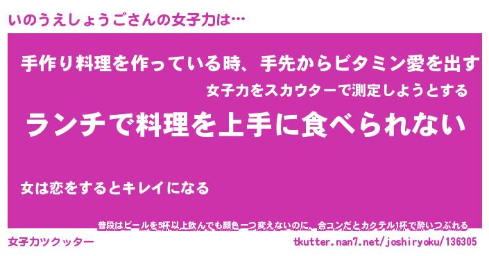 | ヘコむあだ名 | 『いのふぇ~』『つくし』『いのっぺ』 |
