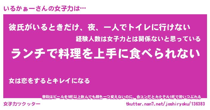 | ファンタジー風あだ名 | 『イルフェル』『エターナルイルカァーー』 |