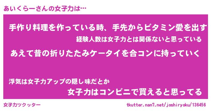 | ヘコむあだ名 | 『あいにー』『つくし』『あいお』 |