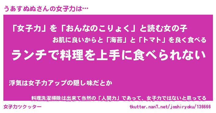 | ヘコむあだ名 | 『うあふぇ~』『酢こんぶ』『うあお』 |