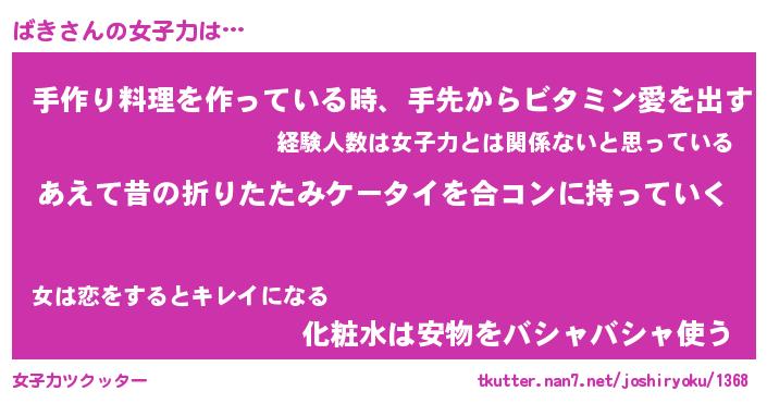 | ヘコむあだ名 | 『ばきにゅー』『豆乳』『ばき太郎』 |
