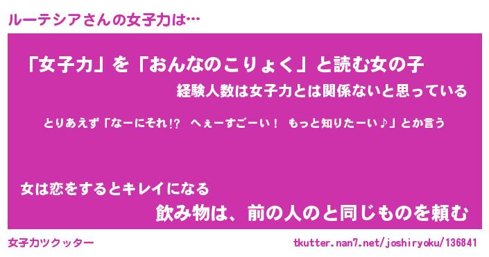| 恥ずかしいあだ名 | 『プリティールーテシア』『ルーっちょ』 |