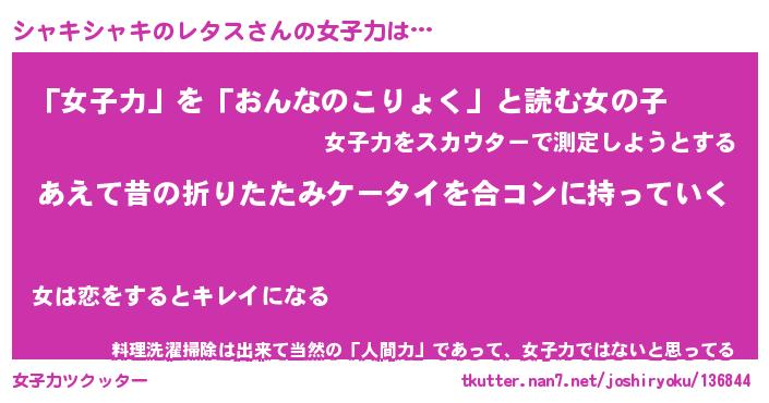 | 男性向けラノベタイトル風あだ名 | 『シャキシャキのレタスの憂鬱』 |