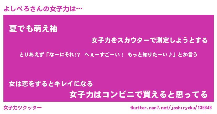 | ヘコむあだ名 | 『よしにー』『つくし』『よしぷりん』 |