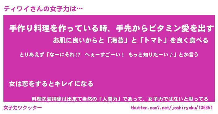 | ヘコむあだ名 | 『ティふぇ~』『酢こんぶ』『ティお』 |