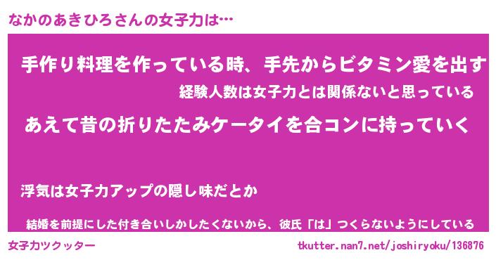 | ヘコむあだ名 | 『なかもー』『つくし』『なかっぺ』 |