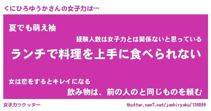 | 恥ずかしいあだ名 | 『プリティーくにひろゆうか』『くにちん』 |