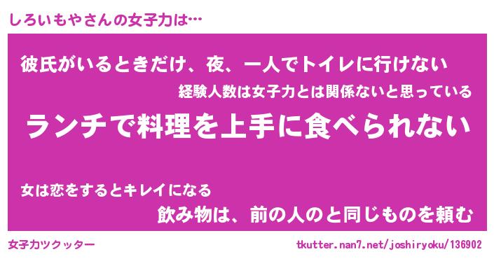 | ファンタジー風あだ名 | 『シロフェル』『エターナルシロイモヤー』 |