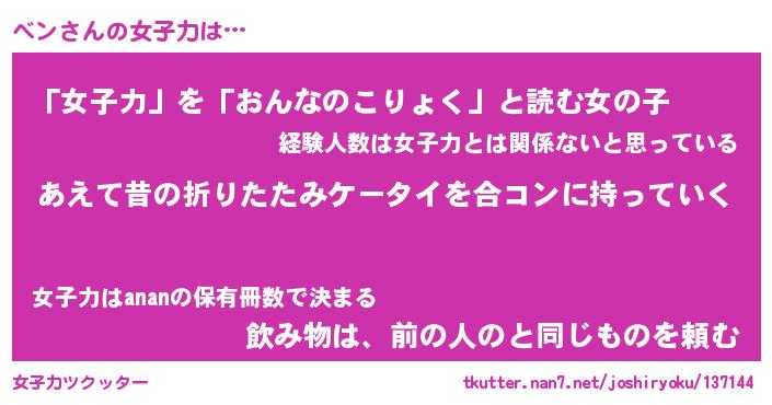 | ヘコむあだ名 | 『ベンっふぃ~』『レバニラ』 |