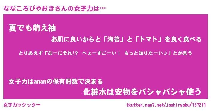 | ヘコむあだ名 | 『ななにゅー』『なまこ酢』『ななを』 |
