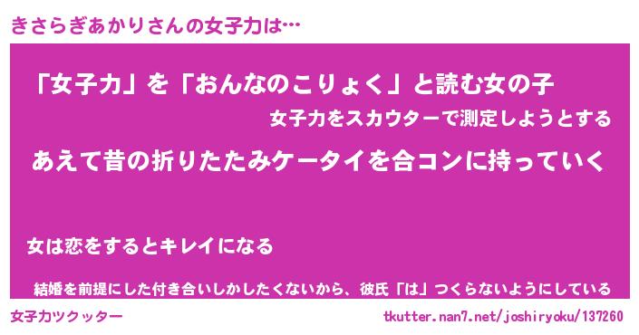 | 胡散臭い通販商品みたいなあだ名 | 『必ず成功するブレスレット…その名も「きさらぎあかり」』 |