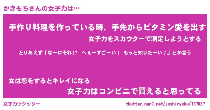 | ファンタジー風あだ名 | 『カキフェル』『エターナルカキモチー』 |