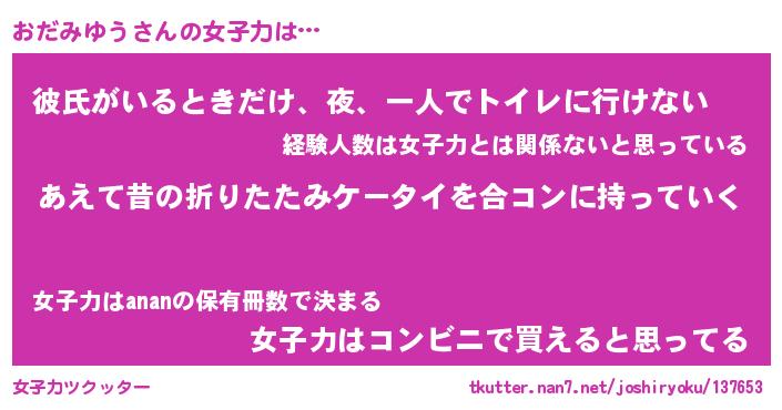 | ファンタジー風あだ名 | 『オダフェル』『エターナルオダミユウー』 |