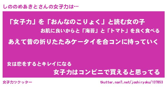 | ヘコむあだ名 | 『しのもー』『酢こんぶ』『しのお』 |