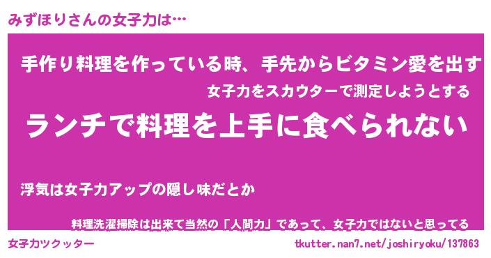 | 恥ずかしいあだ名 | 『プリティーみずほり』『みずっちょ』 |