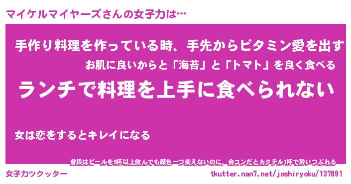 | 料理風あだ名 | 『ネギたっぷりマイケルマイヤーズの南蛮漬け』 |