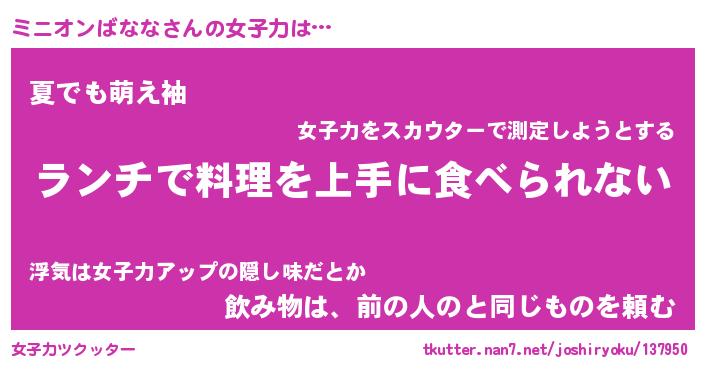 | ヘコむあだ名 | 『ミニふぇ~』『牛乳』『ミニ太郎』 |