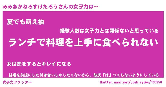 | ヘコむあだ名 | 『みみにー』『牛乳』『みみ太郎』 |