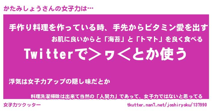 | ヘコむあだ名 | 『かたもー』『つくし』『かたっぺ』 |