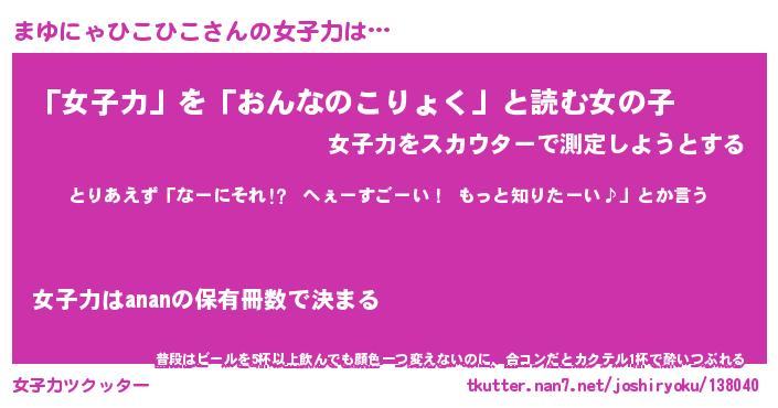 | 肩書あだ名 | 『まゆにゃひこひこ御曹司』 |