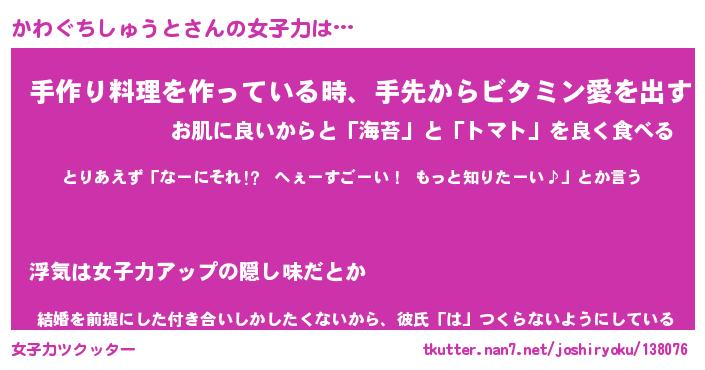 | 肩書あだ名 | 『かわぐちしゅうと御曹司』 |