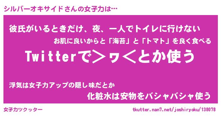 | 男性向けラノベタイトル風あだ名 | 『シルバーオキサイドの憂鬱』 |