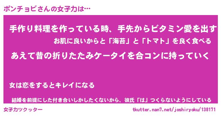 | ヘコむあだ名 | 『ポンにー』『つくし』『ポン太郎』 |