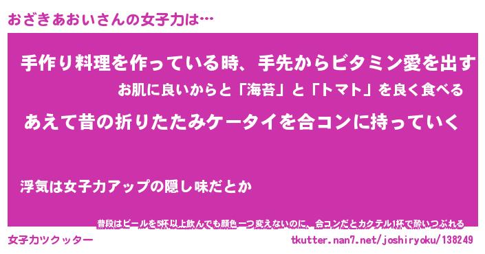 | ヘコむあだ名 | 『おざふぇ~』『酢こんぶ』『おざお』 |