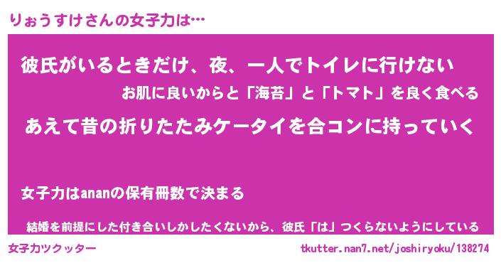 | ヘコむあだ名 | 『りぉもー』『豆乳』『りぉぷりん』 |