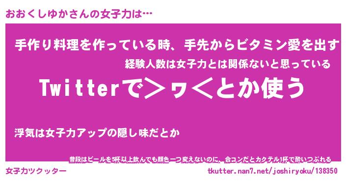 | 恥ずかしいあだ名 | 『プリティーおおくしゆか』『おおっちょ』 |