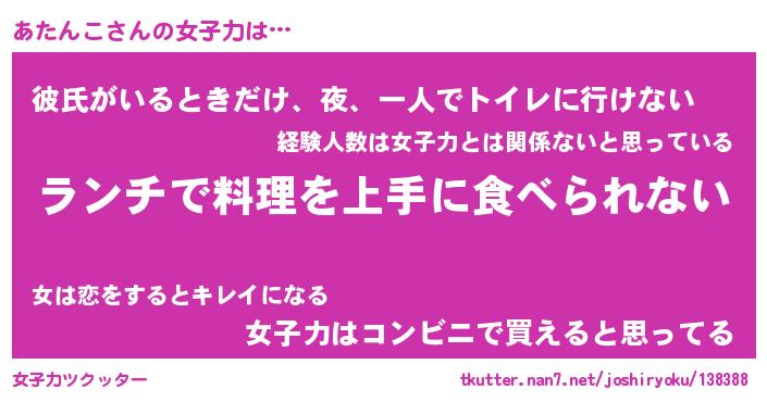 | ヘコむあだ名 | 『あたふぇ~』『豆乳』『あたぷりん』 |