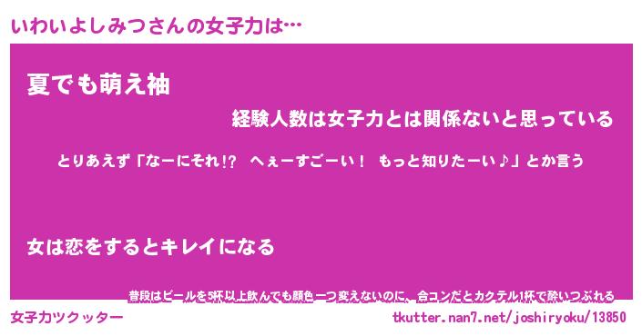 | ヘコむあだ名 | 『いわにー』『つくし』『いわぷりん』 |