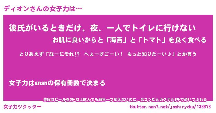| 意味不明あだ名 | 『ペロリンディオン』『永久保存ディオン』 |