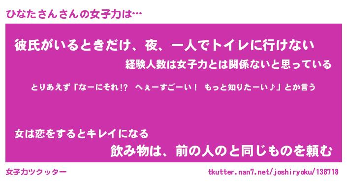 | ヘコむあだ名 | 『ひなにゅー』『牛乳』『ひなっちょ』 |