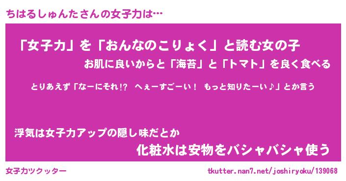 | ヘコむあだ名 | 『ちはにゅー』『酢こんぶ』 |