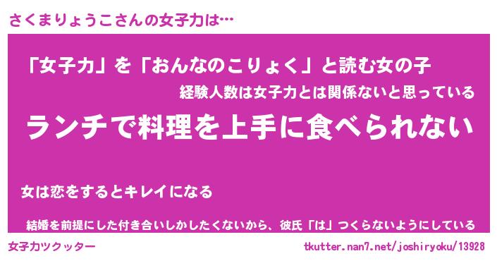 | ヘコむあだ名 | 『さくっふぃ~』『牛乳』『さくっ子』 |