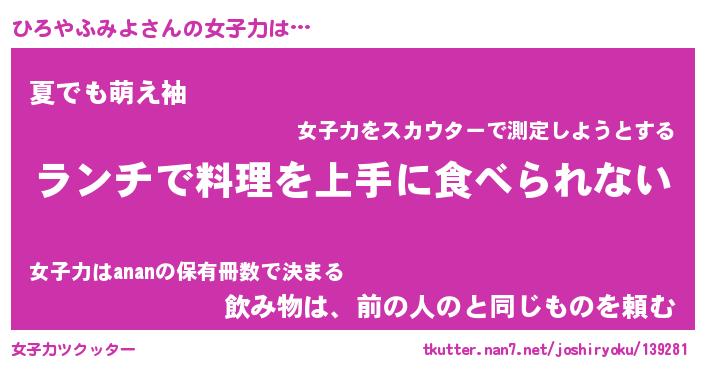 | ヘコむあだ名 | 『ひろにー』『なまこ酢』『ひろっぺ』 |