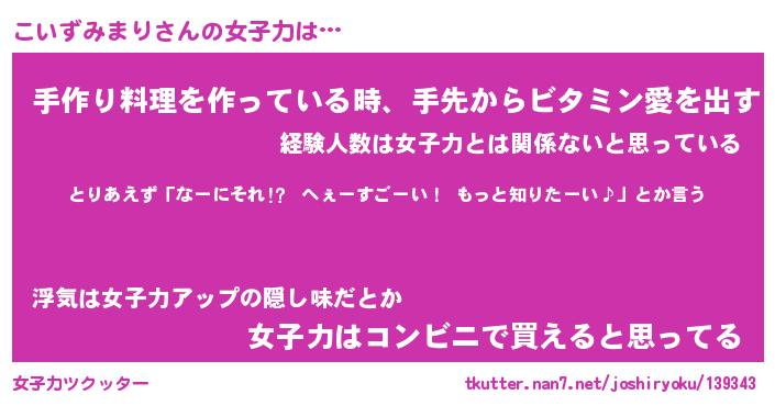 | 恥ずかしいあだ名 | 『プリティーこいずみまり』『こいっちょ』 |
