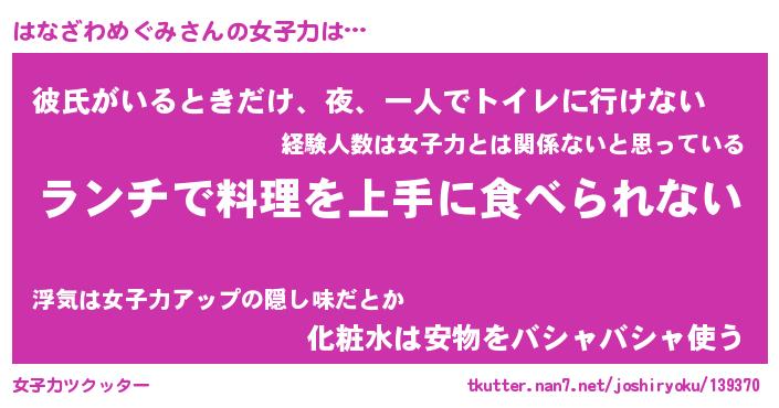 | 恥ずかしいあだ名 | 『プリティーはなざわめぐみ』『はなちん』 |