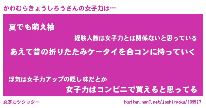 | 肩書あだ名 | 『かわむらきょうしろう社長』 |