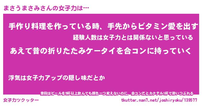 | 恥ずかしいあだ名 | 『プリティーまさうまさみ』『まさっちょ』 |
