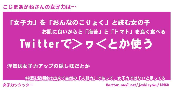 | 男性向けラノベタイトル風あだ名 | 『こじまあかねの憂鬱』 |