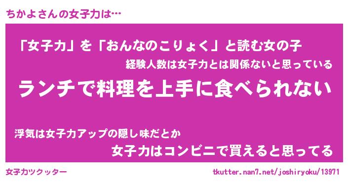 | ヘコむあだ名 | 『ちかにゅー』『酢こんぶ』 |