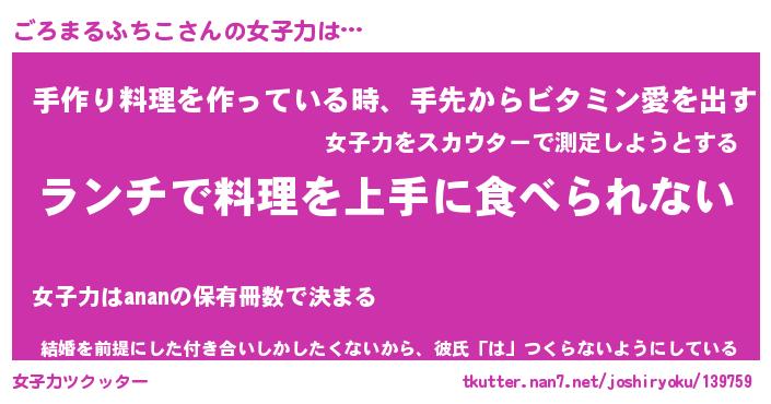 | 恥ずかしいあだ名 | 『プリティーごろまるふちこ』『ごろちん』 |