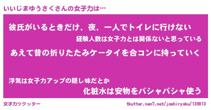 | 女子向けラノベタイトル風あだ名 | 『(仮)いいじまゆうさくのやんごとなき事情』 |