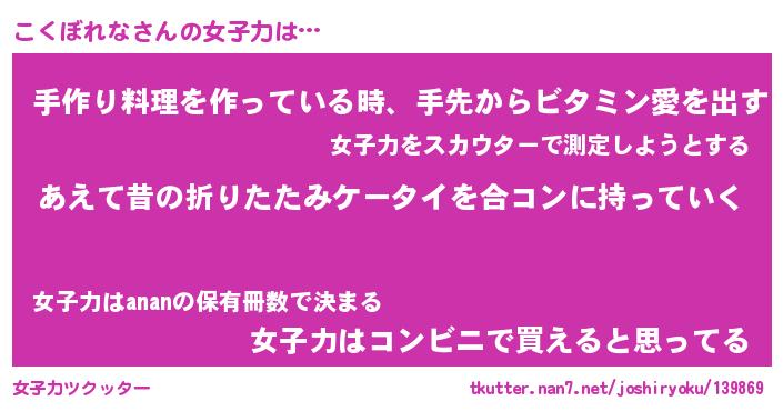 | ヘコむあだ名 | 『こくっふぃ~』『なまこ酢』 |