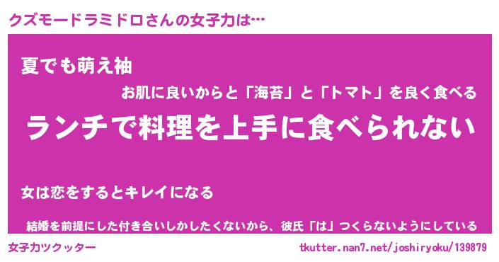 | ヘコむあだ名 | 『クズにー』『牛乳』『クズっ子』 |