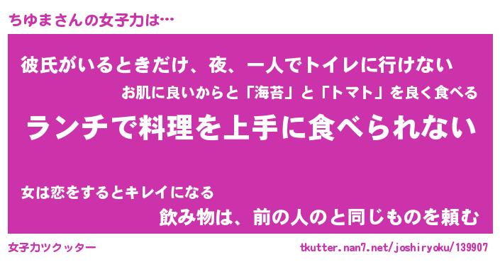 | ファンタジー風あだ名 | 『チユフェル』『エターナルチユマー』 |