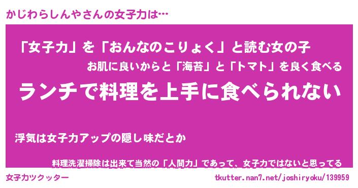 | ヘコむあだ名 | 『かじにー』『酢こんぶ』『かじを』 |