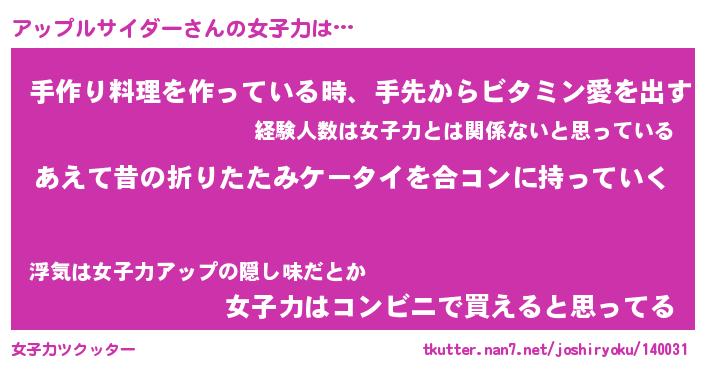 | 女子向けラノベタイトル風あだ名 | 『(仮)アップルサイダーのやんごとなき事情』 |
